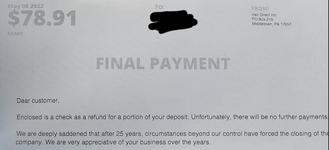 When Hair Direct closed their virtual doors at the end of January, they left thousands of users in the lurch. Some clients had prepaid for hair systems, and some had some on order.