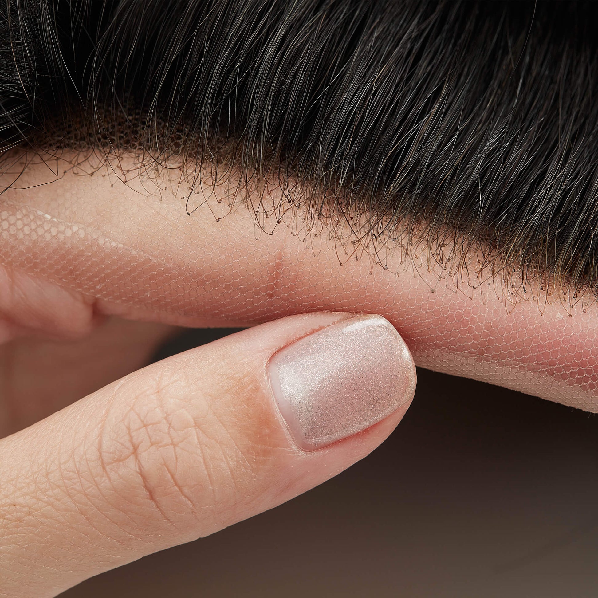 Thin skin at the back and sides strengthen the base and thin skin has the added benefit that it is easy to clean and maintain. The stitching lines in the lace area and the skin structure makes this hair piece durable.