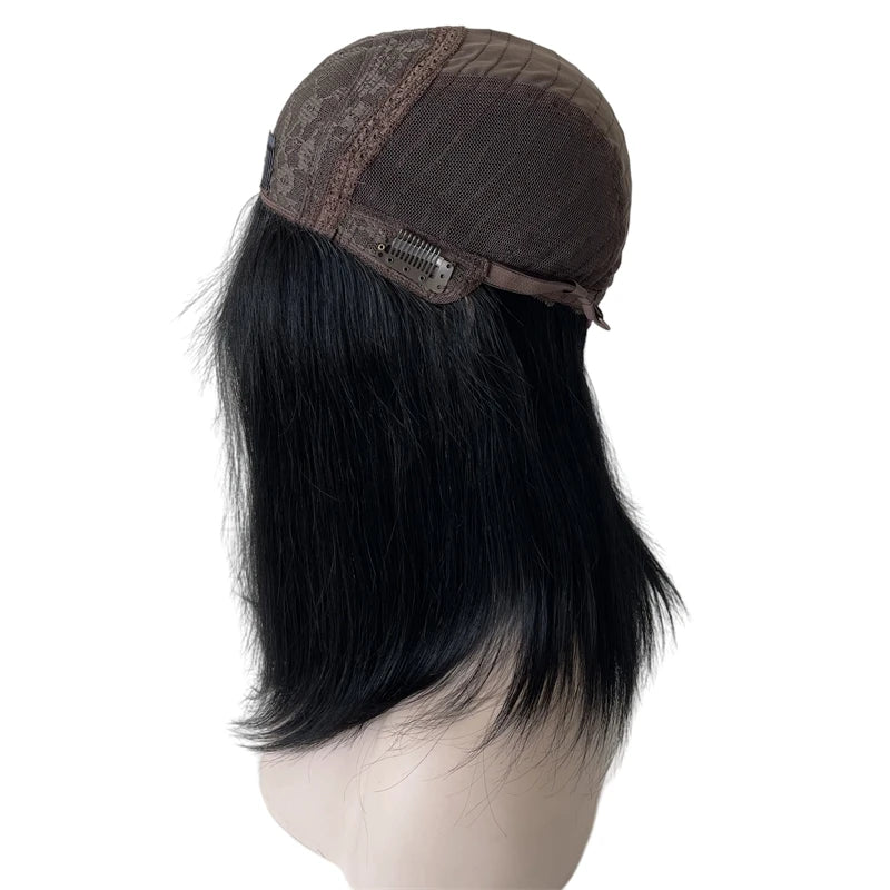 16" Malaysian Virgin Human Hair Black Kosher Wig 130% Density Silky Straight 4x4 Silk Top