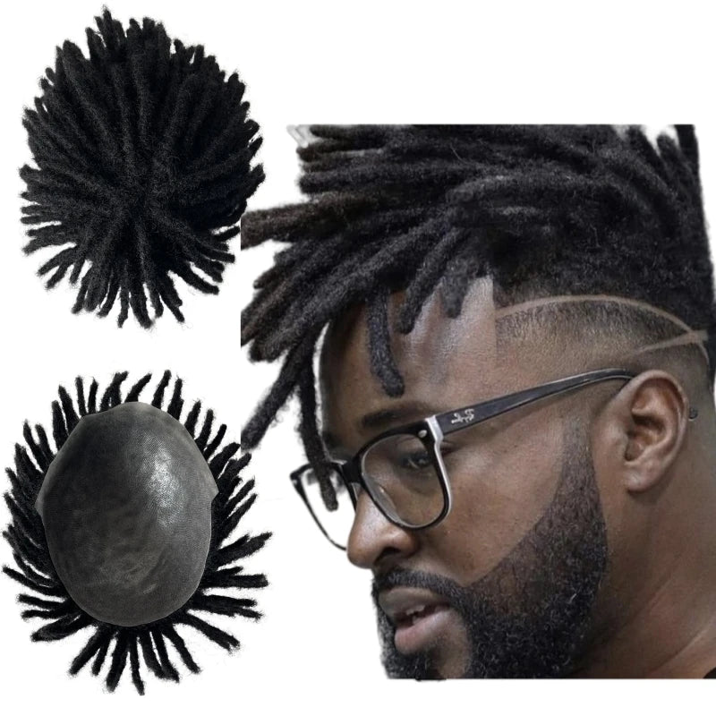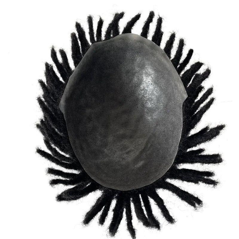 Indisk virgin menneskehår jet sort korte dreadlocks toupe 8x10 hud-enhed til mænd