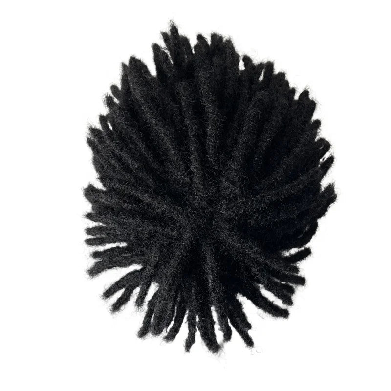 ### Indisk virgin menneskehår erstatning #### Produktets højdepunkter - **Farve:** Jet sort (#1) - **Længde:** 3 tommer - **Stil:** Korte dreadlocks-knuder - **Hættestørrelse:** 8x10 tommer - **Toupee tæthed:** 130% - **Basismateriale:** Fuld PU (polyurethan) toupe - **MOQ (mindste bestillingsantal):** 1 stk. Denne førsteklasses toupe har omhyggeligt fremstillede korte dreadlocks, perfekt til sorte mænd, der ønsker et naturligt og sømløst look. Fremstillet af ægte indisk virgin menneskehår, har den en luksuriøs tekstur og giver det ideelle volumen med en tæthed på 130%. Den fulde PU-base sikrer en komfortabel og sikker pasform.