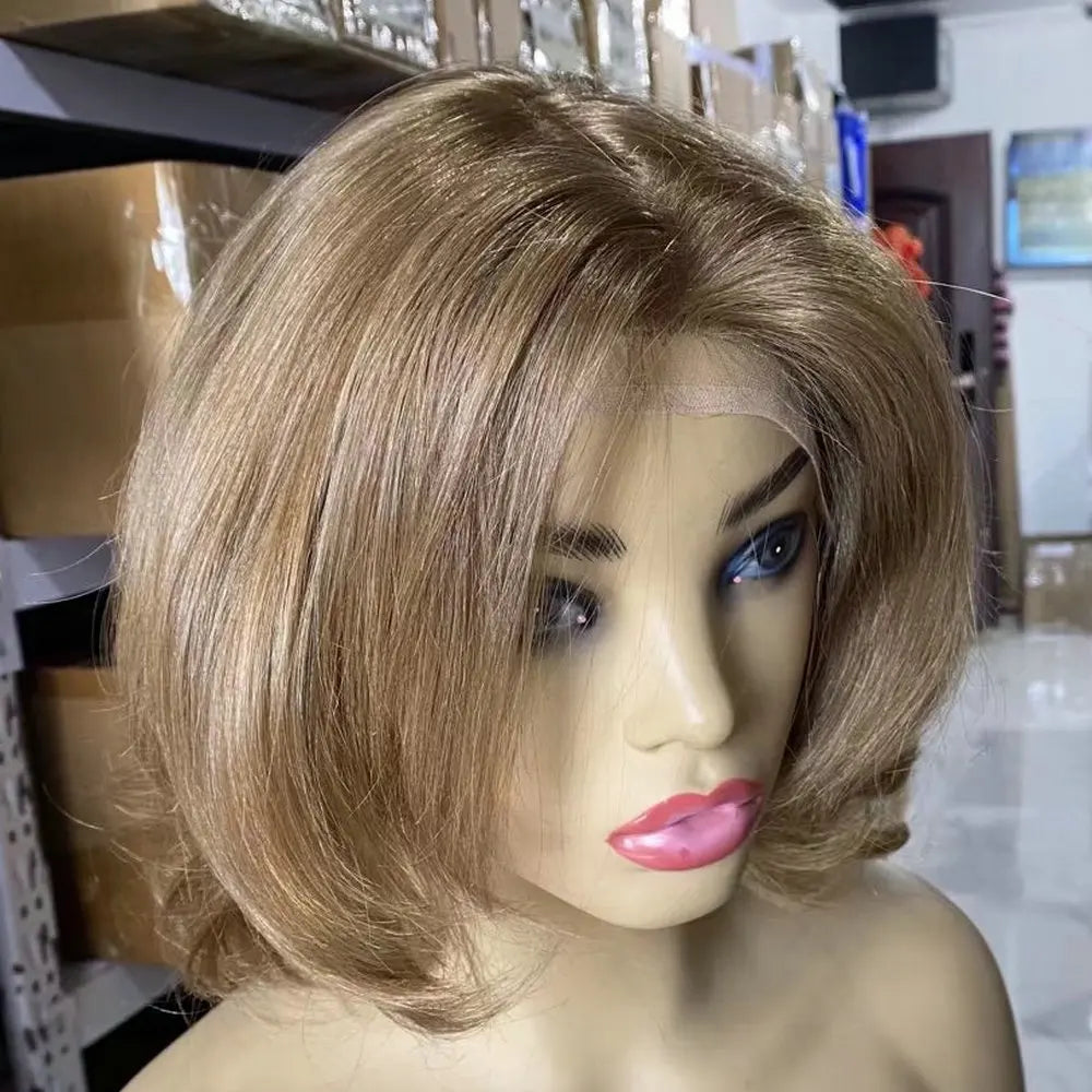 Medicinsk paryk med silikone, allergivenlig schweizisk front af blonde, menneskehårsparyk med silkeblød top, kort europæisk Remy-hår, glat ægte hår G042