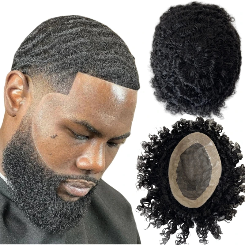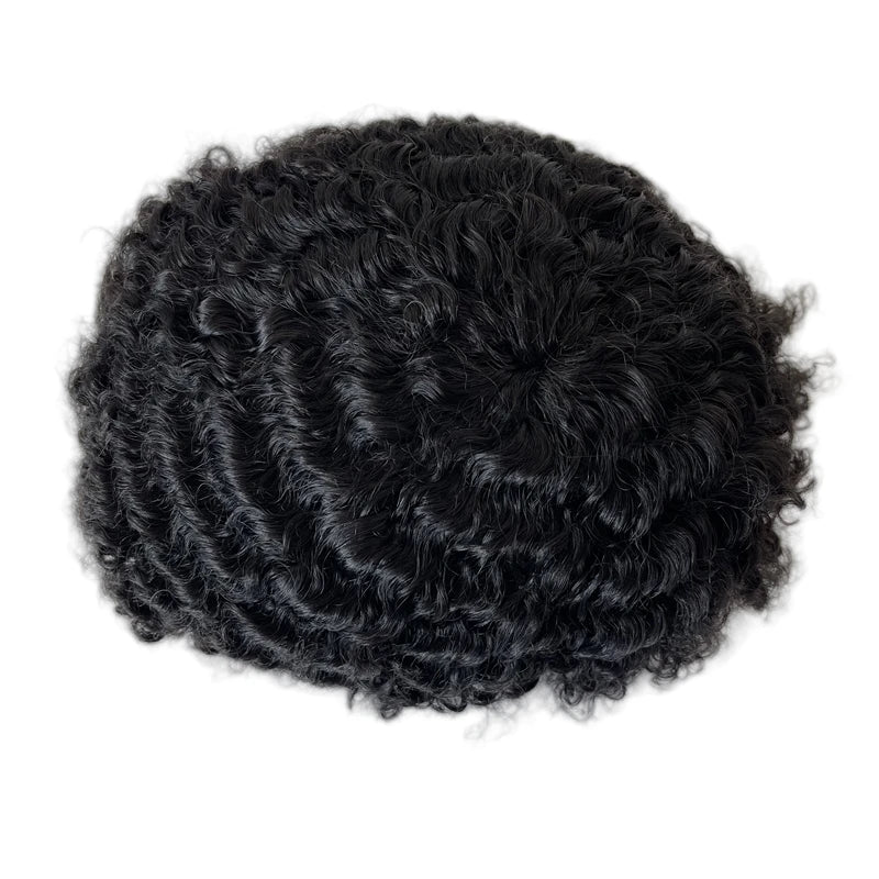 Malaysian Virgin Human Hair Afro Toupee 4mm Root Jet Black 8x10 Full Swiss Lace for Men