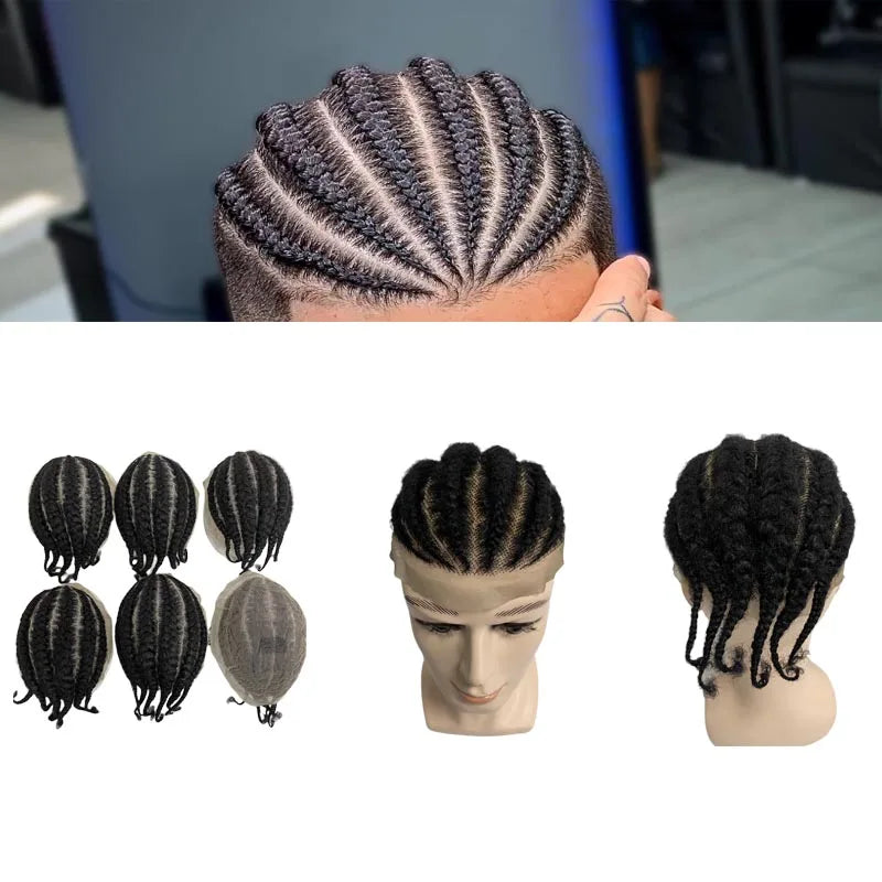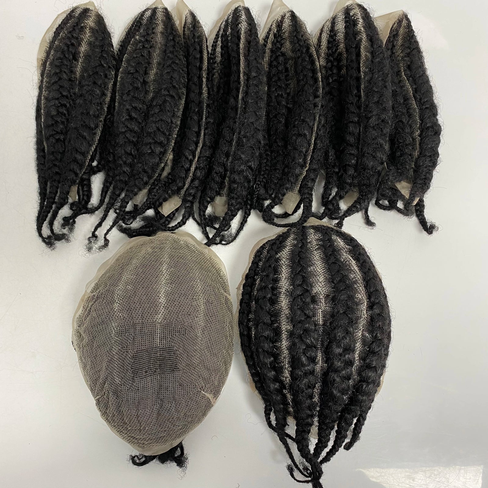 Malaysian Virgin Human Hair Afro Corn Braids Full Lace Toupee 8x10 Black 1B