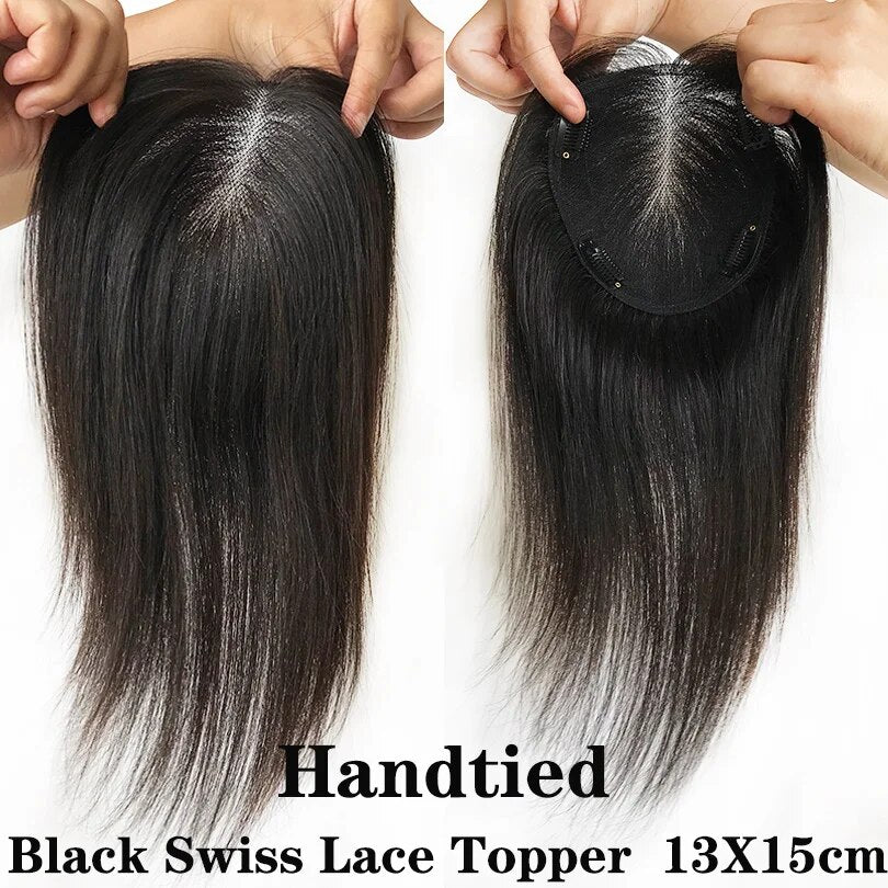 Swiss Lace Human Hair Toppers for Women Clip In Hairpieces