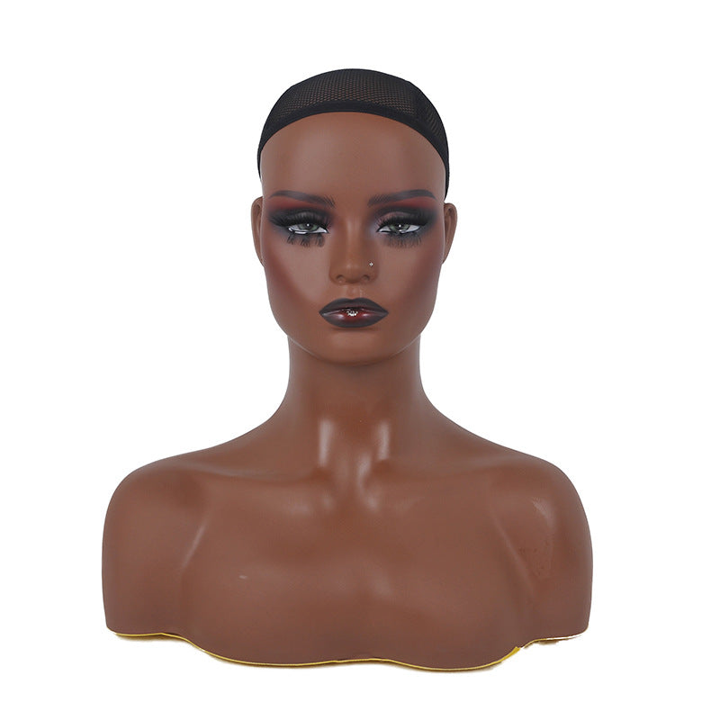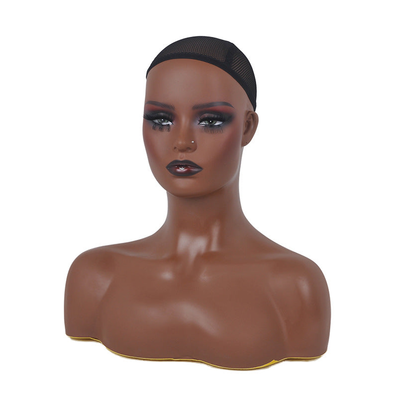 Puolivartaloinen naispuolinen mustaihoinen peruukkimannekiinipää