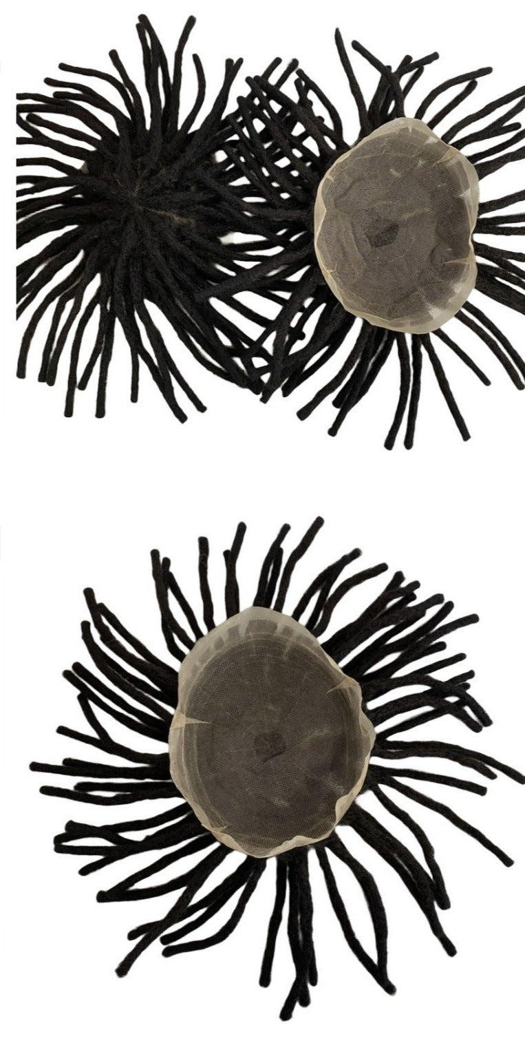 Ihmisen hiuksista valmistettu hiuslisäke #1 Dreadlockit, 8x10 täysi pitsiperuukki mustille miehille