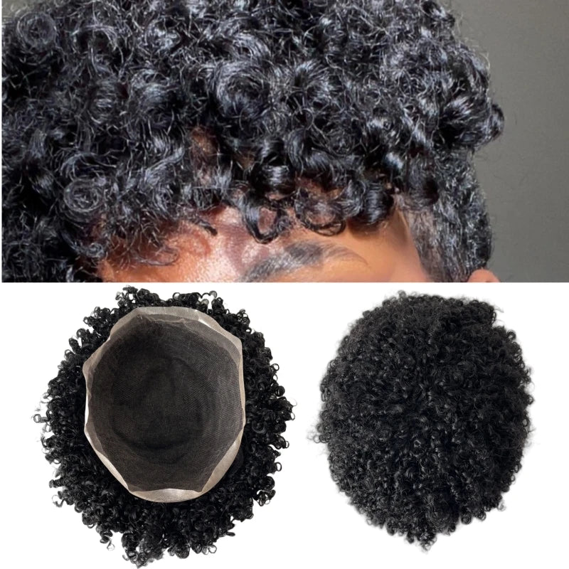 Afro Corn Star Fonat Teljes Csipkéből Készült Emberi Haj Tupé Fekete Férfiaknak 8x10