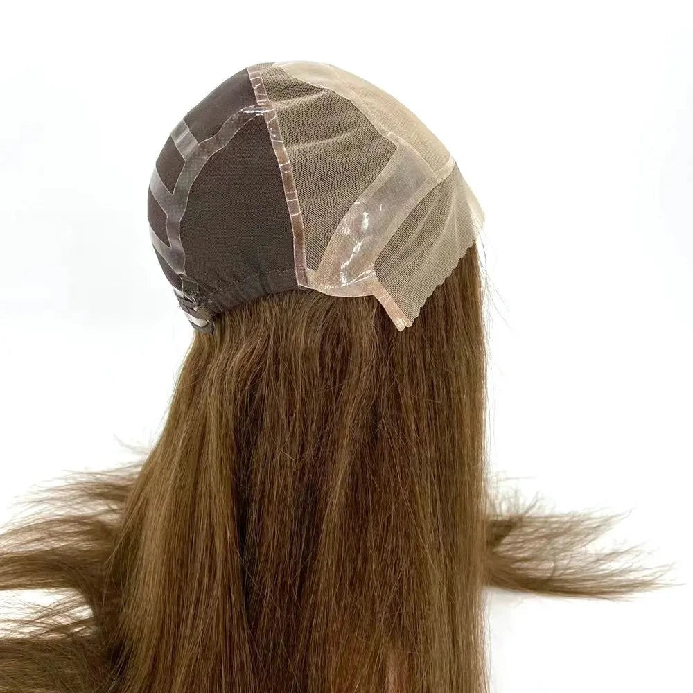 Selyem tetejű paróka nőknek 1/8" hajtott csipkével és 1" polibevonattal elöl
