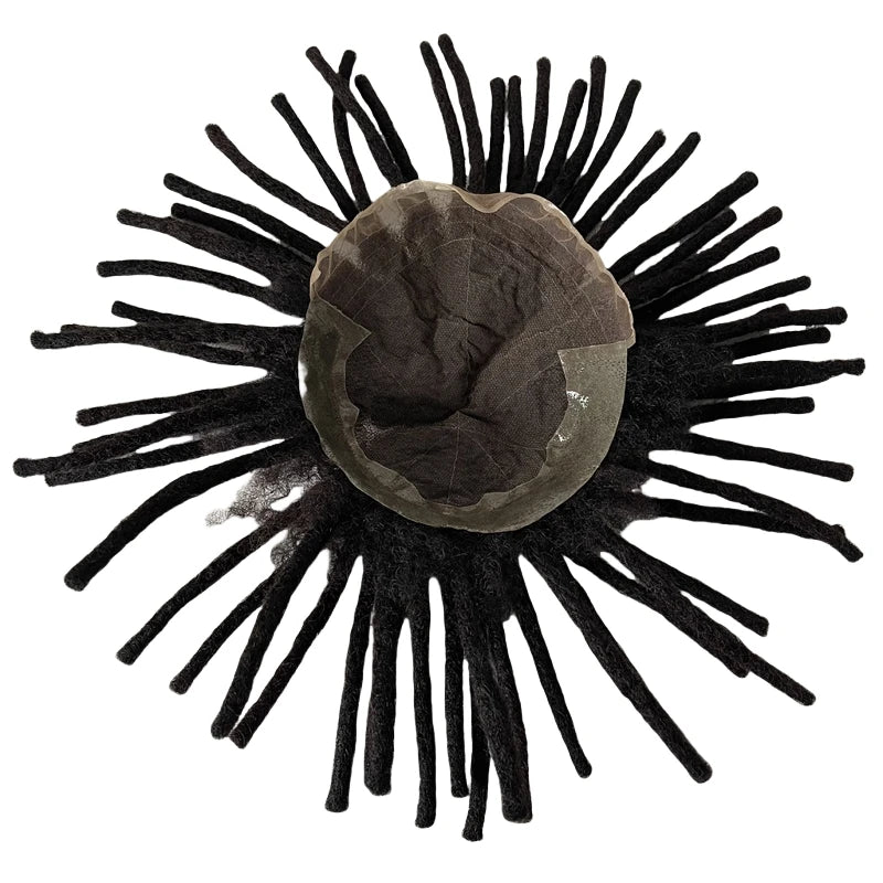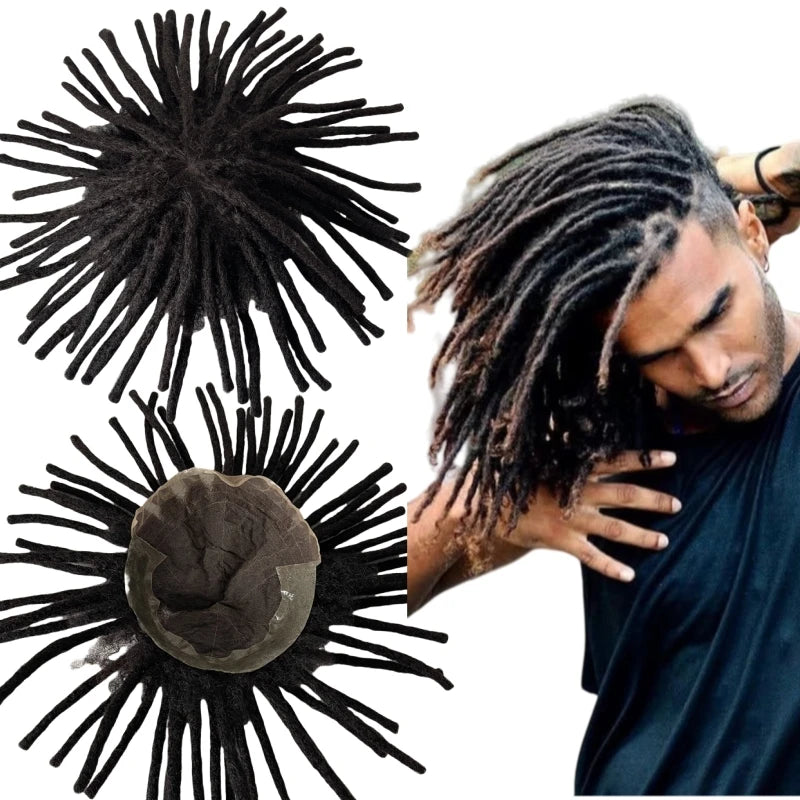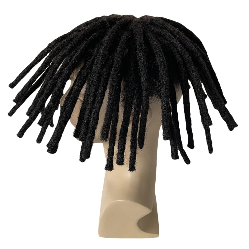 8 hüvelykes indiai szűz emberi haj tupé dreadlock elülső csipkés egység #1B fekete férfiaknak