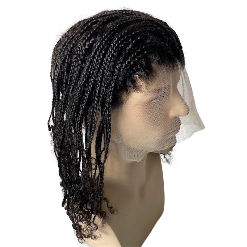 Box fonatok teljes csipkés parókák emberi haj egység fekete férfiaknak