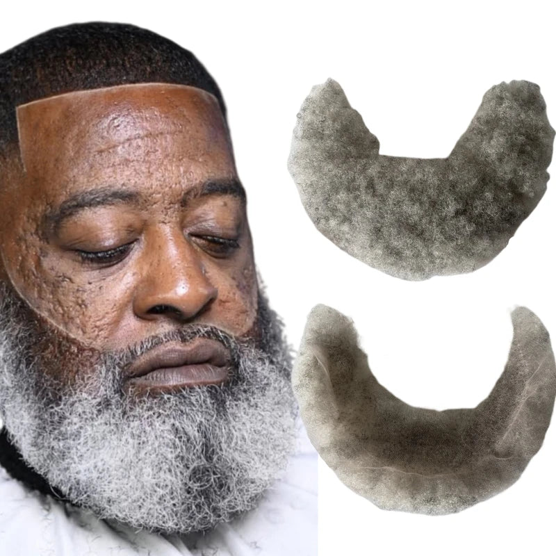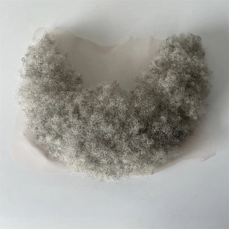 Braziliai szűz emberi hajból készült csipkés egység 1B90 szürke afro szakáll 7x22 cm fekete férfiaknak