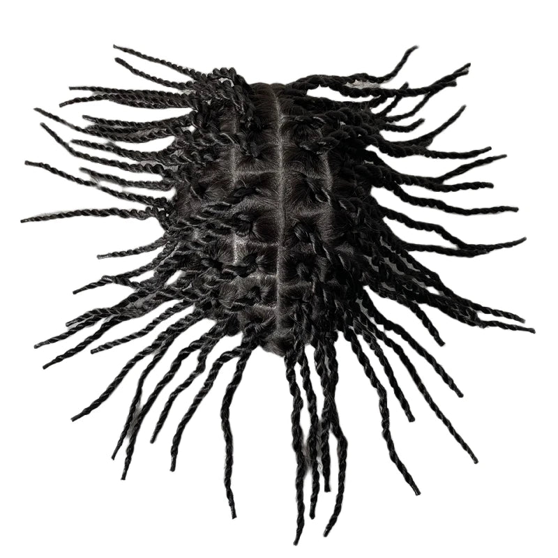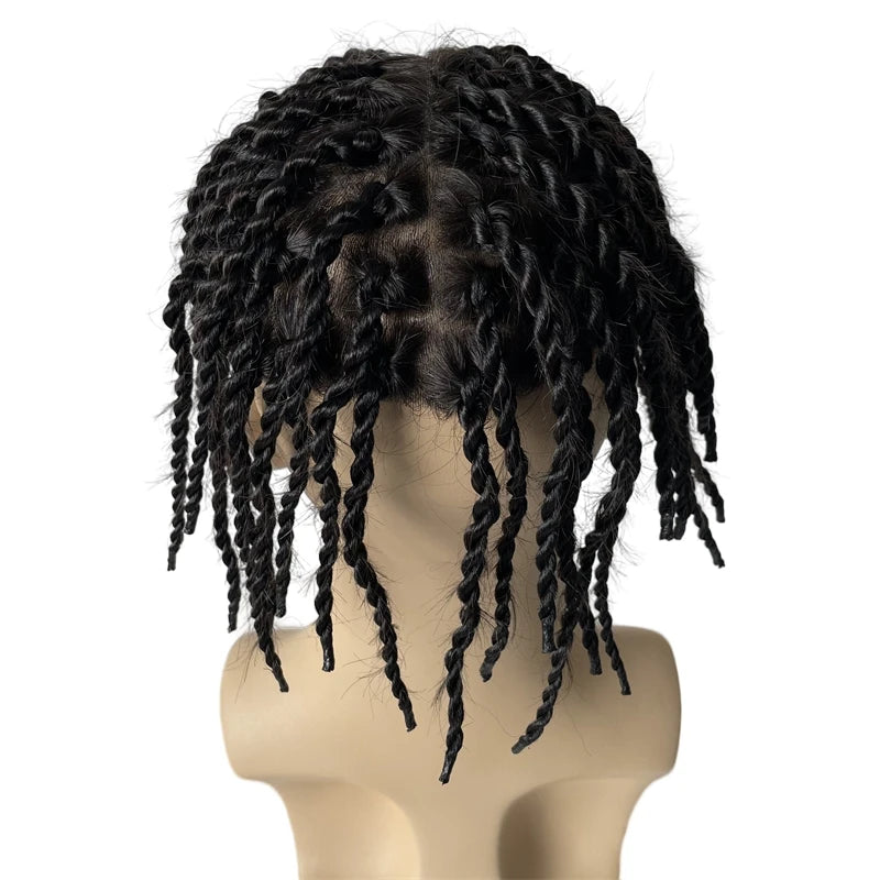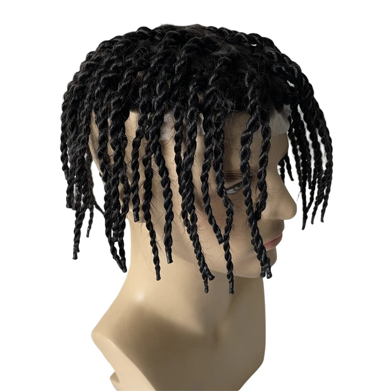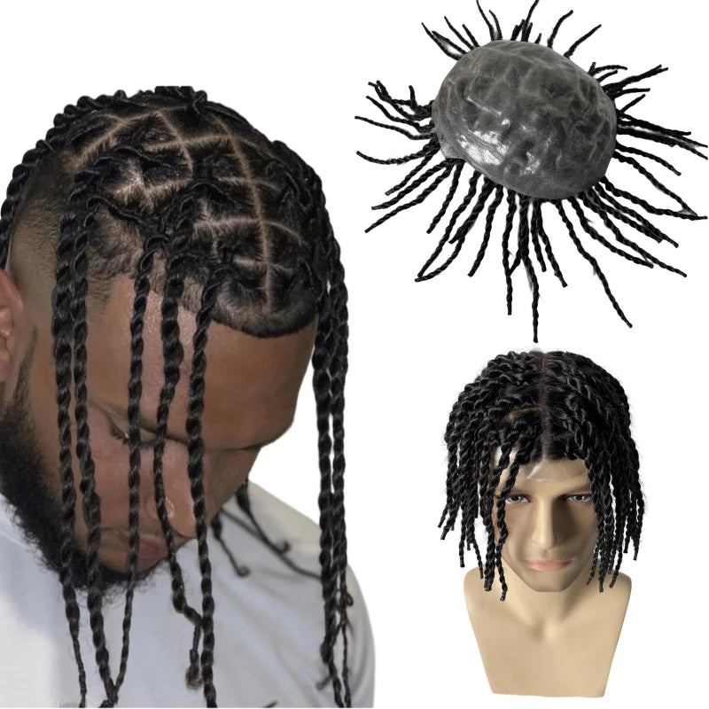 Brazil szűz emberi hajból készült hajpótló 200% sűrűségű Jet Black csavart fonott tupé fekete férfiaknak