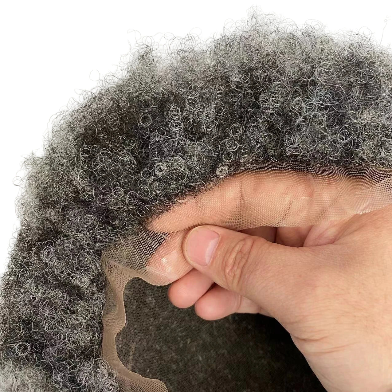 Indiai szűz emberi haj 1B Szürke 10x10 afro göndör, teljes csipkés férfi tupé paróka