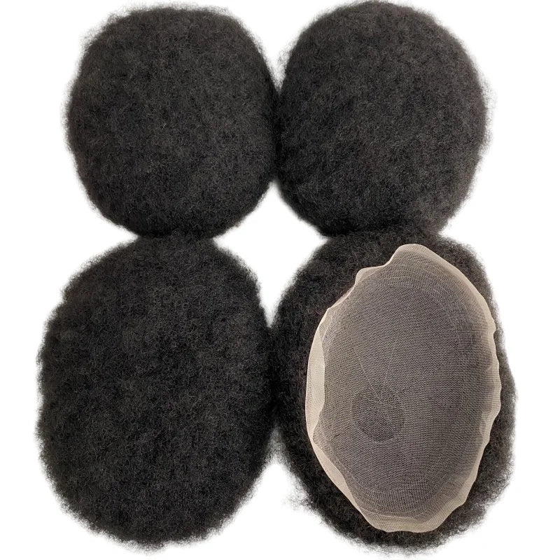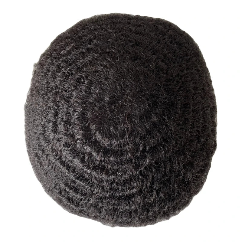 Indiai szűz emberi hajból készült teljes csipkés póthaj #1B színben, afro hullám fekete férfiaknak 6/8/10 mm