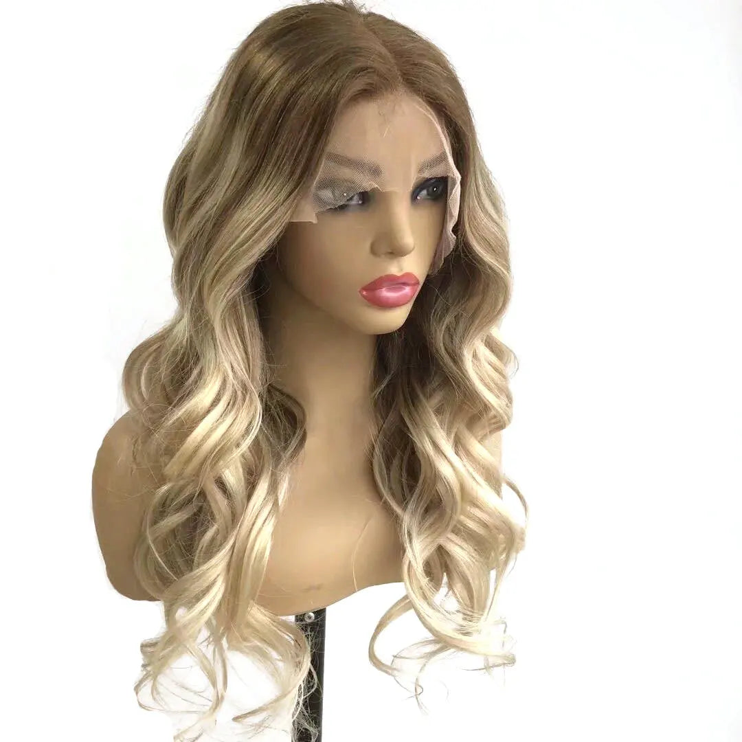 Szőke göndör csipkés frontú paróka, emberi hajból, kóser, hullámos, peluca cabello humano judaica