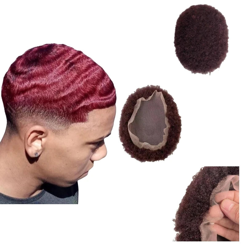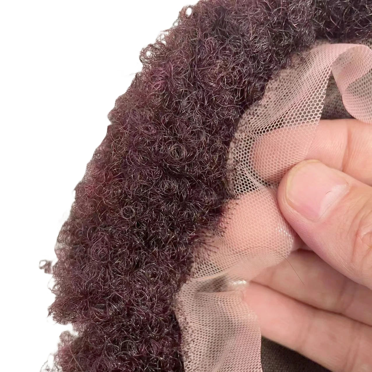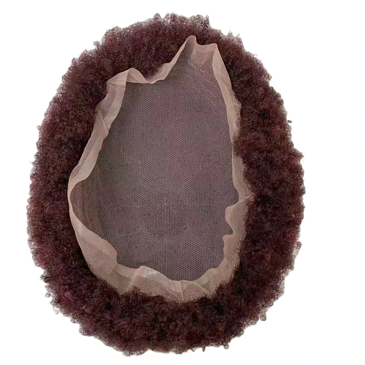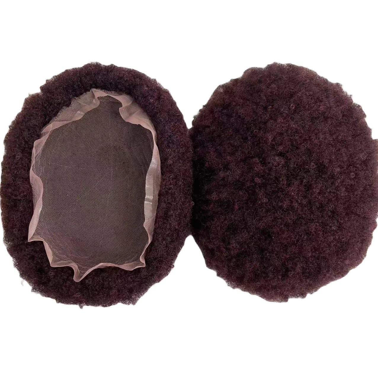 Maláj szűz emberi haj burgundi afro göndör teljes csipkés férfi paróka