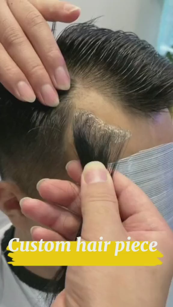 Hajpótlás a halánték fedésére olyan férfiak számára, akik hajhullással vagy visszahúzódó hajvonallal küzdenek.