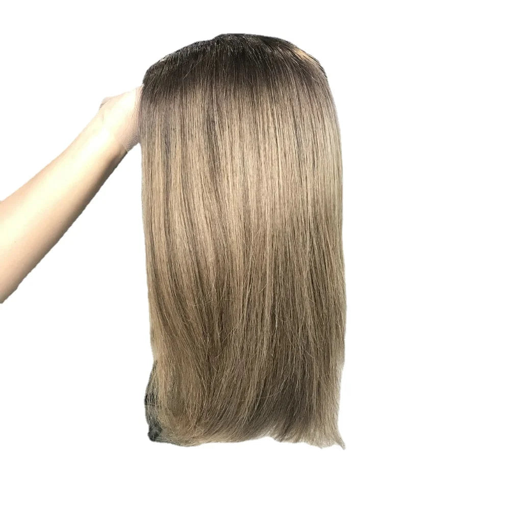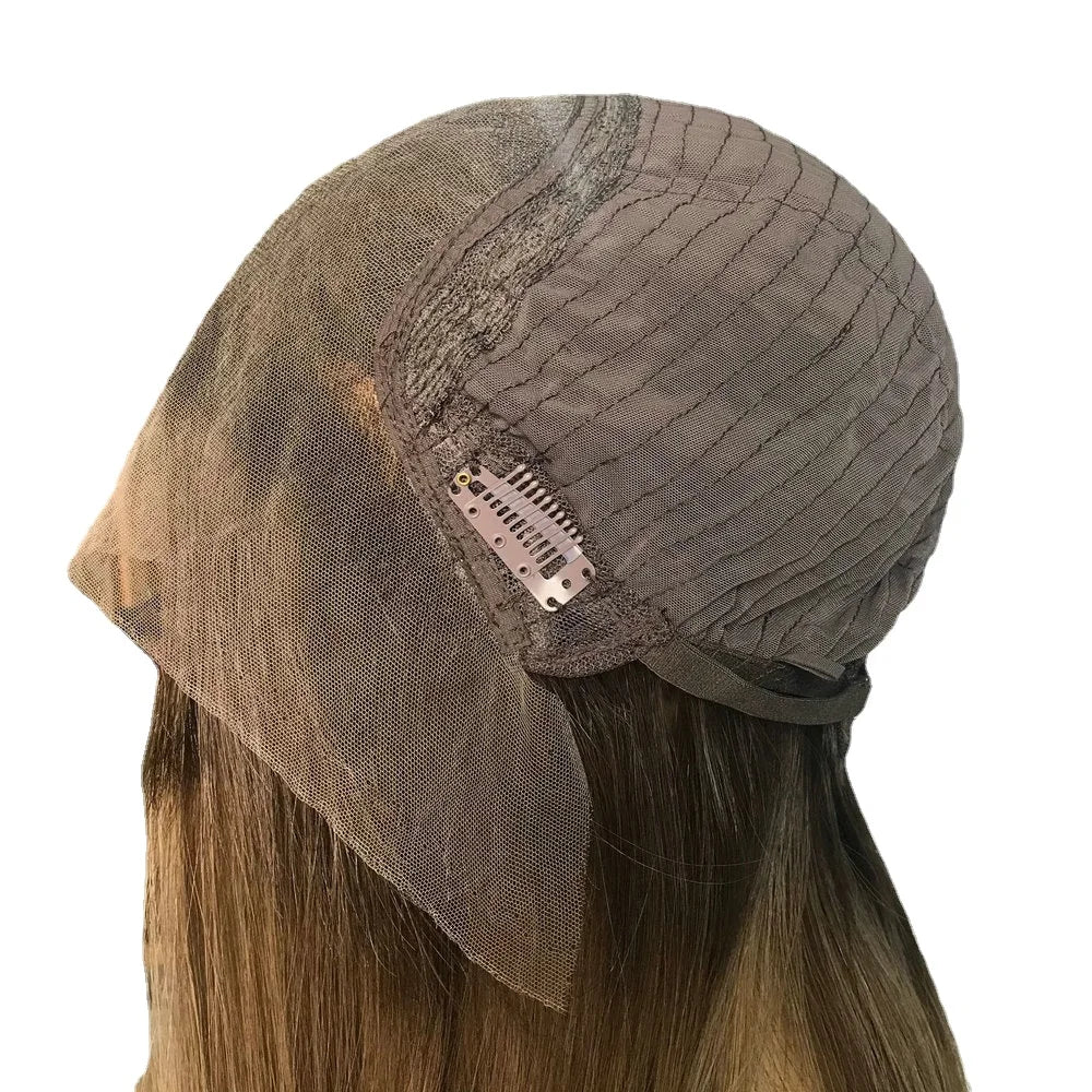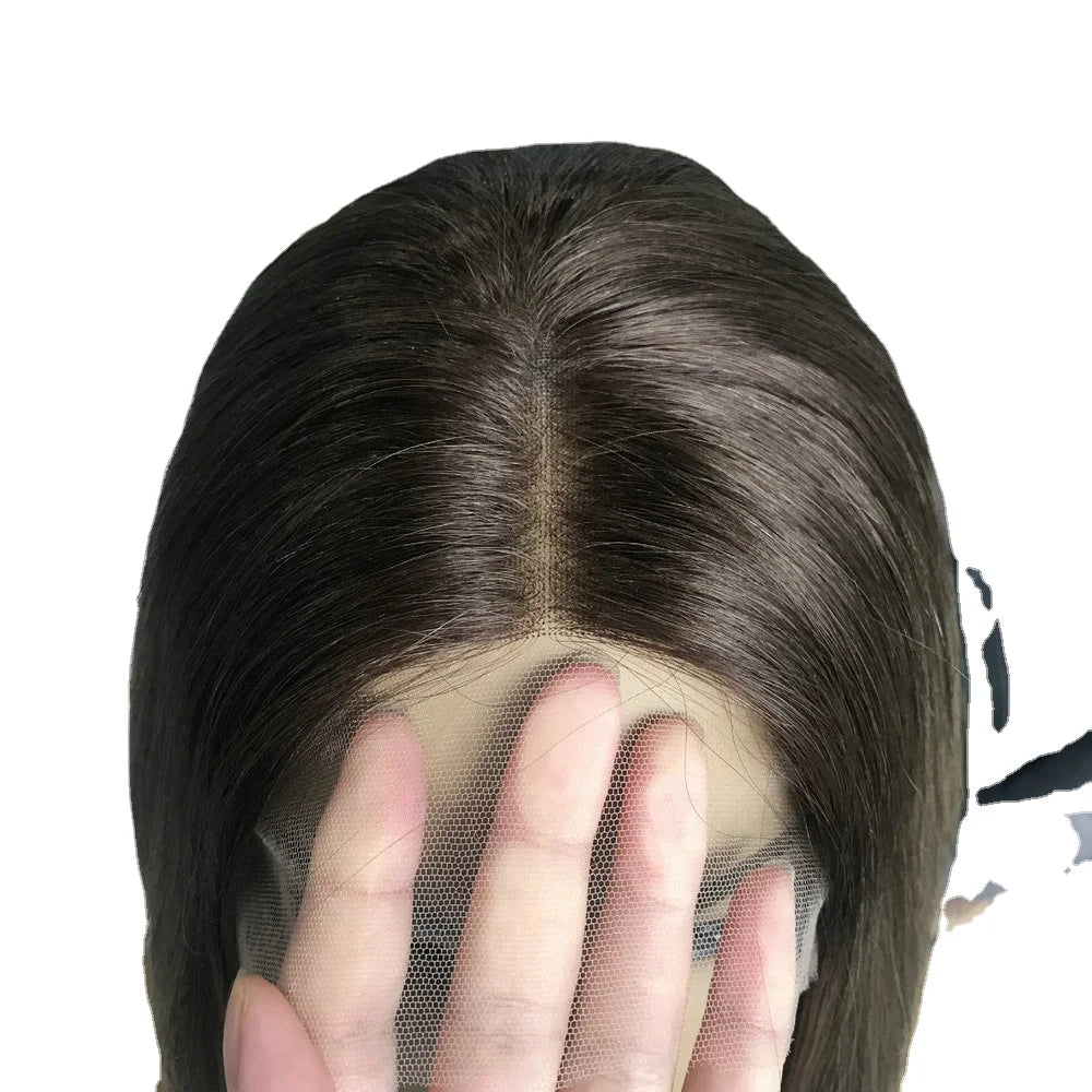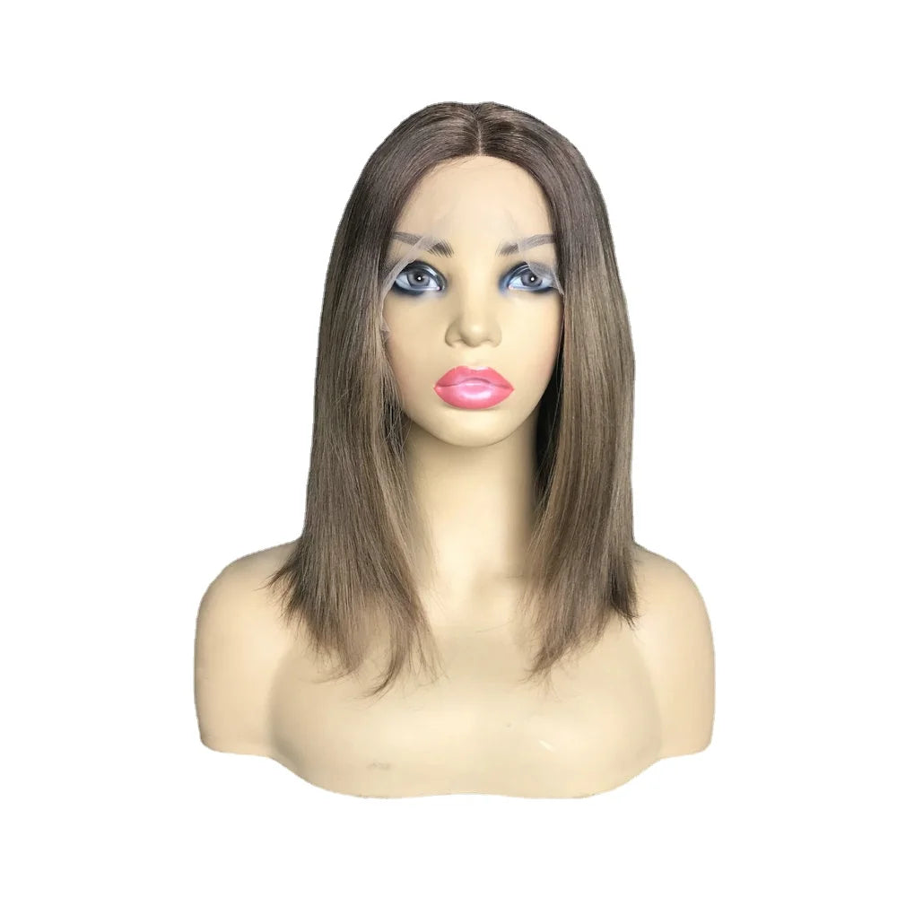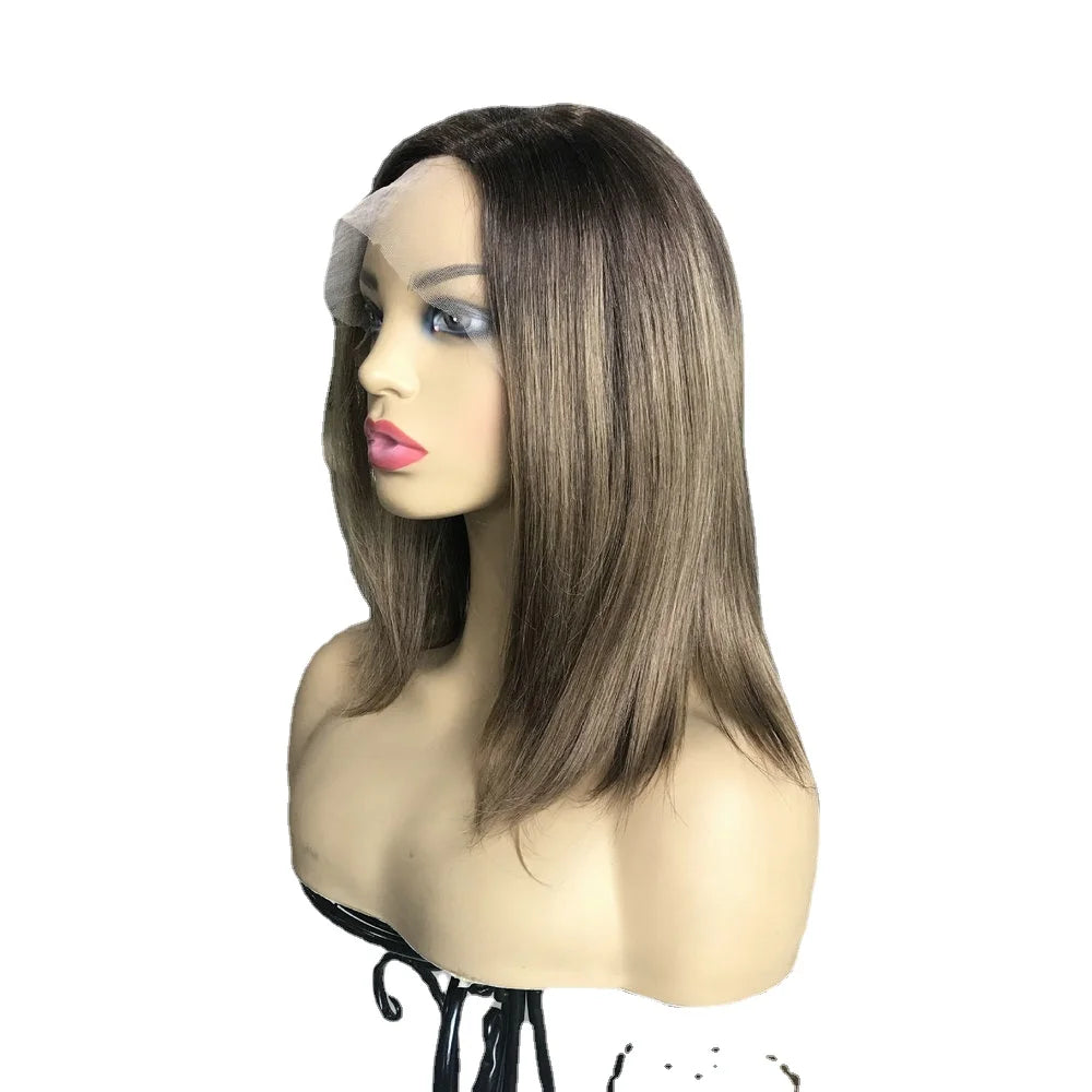 Tops U alakú paróka emberi hajból, európai Remy haj, zsidó rövid parókákhoz, szőke női csipkés elülső kóser haj, sötétbarna G046