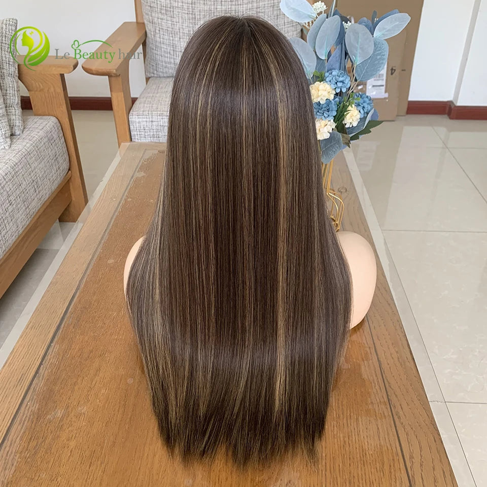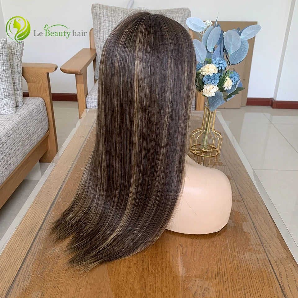 Parrucche Ebraiche con Vera Coda Europea con Riflessi - Parrucche Kosher Colore Naturale, Top in Pizzo Svizzero