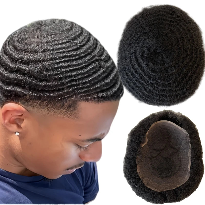 Indiaas Virgin Human Hair Volledige Lace Toupet #1B Kleur Afro Wave voor Zwarte Mannen 6/8/10mm