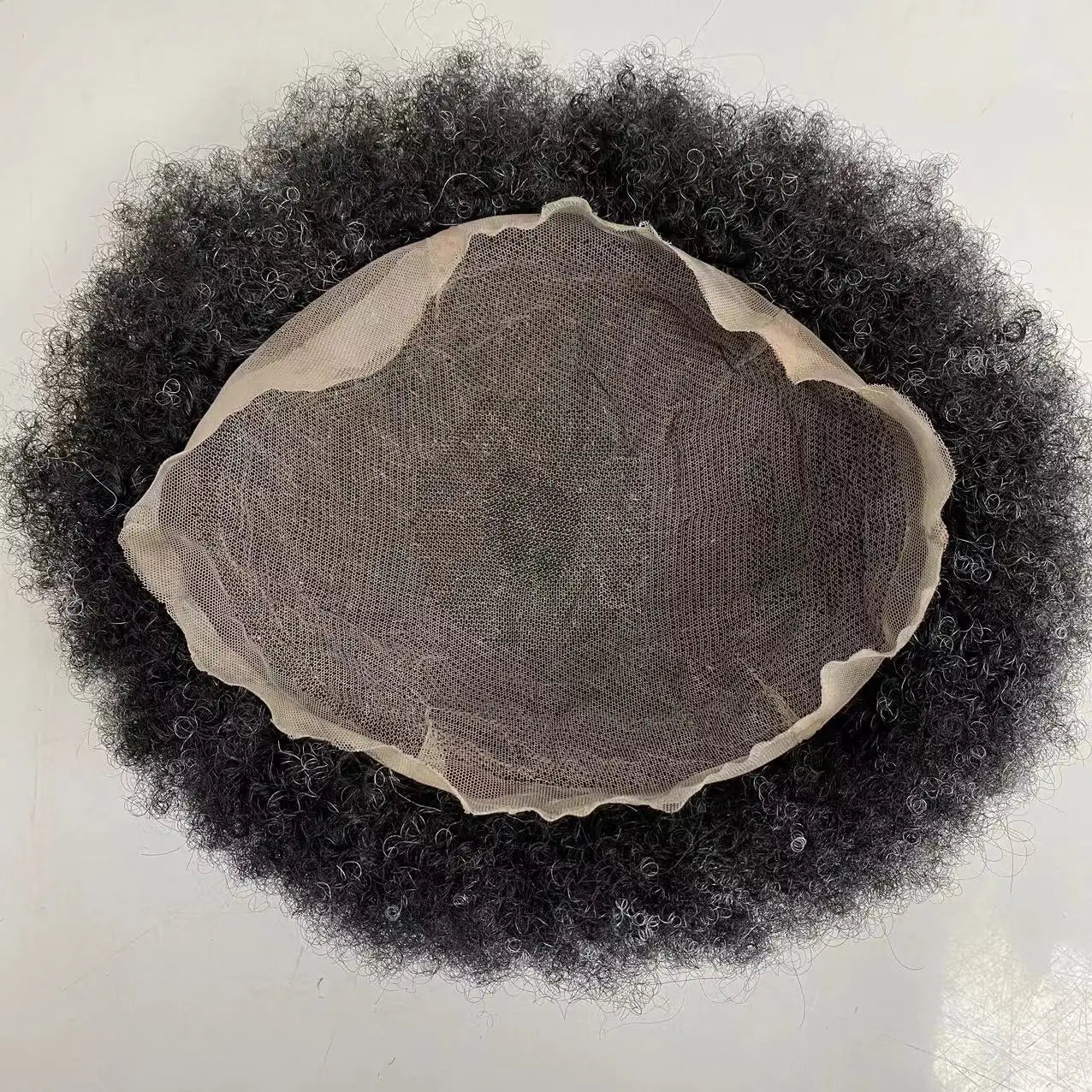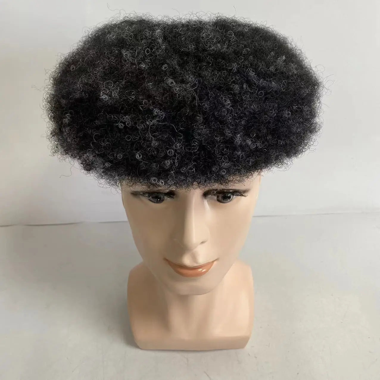 6mm Wave Toupet #1 Grijs Volledig Kant Units voor Zwarte Mannen