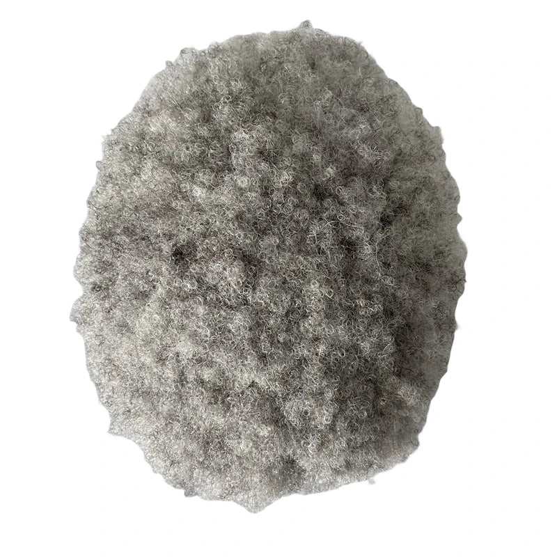 Indiaas Virgin Human Hair Afro Full Lace Toupet #1B80 Grijs 8x10 voor Zwarte Mannen