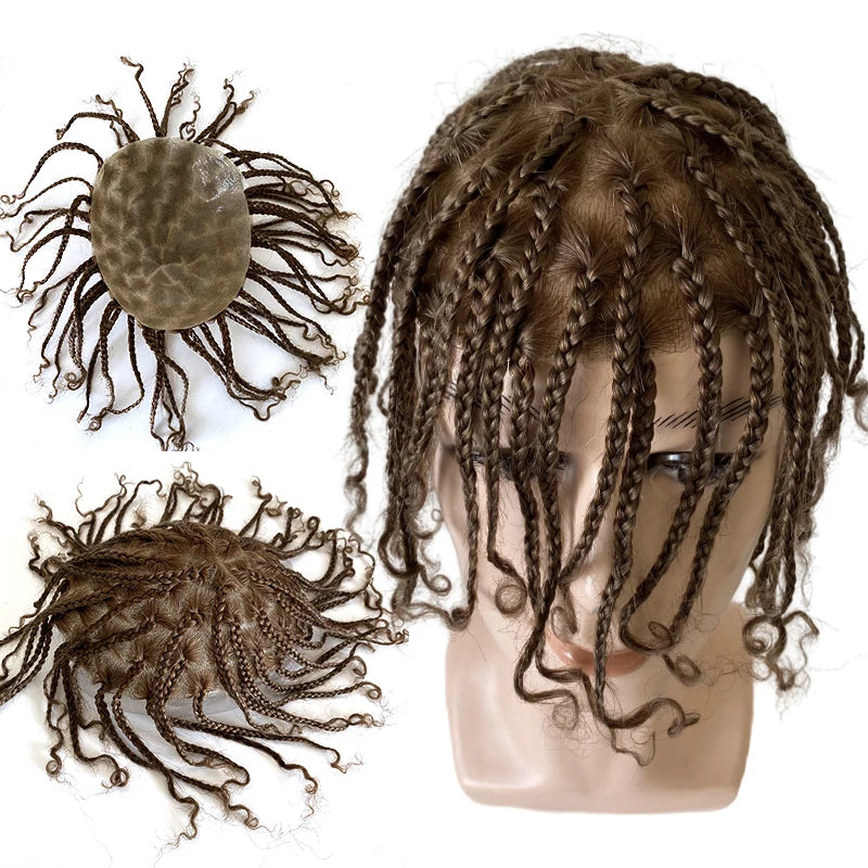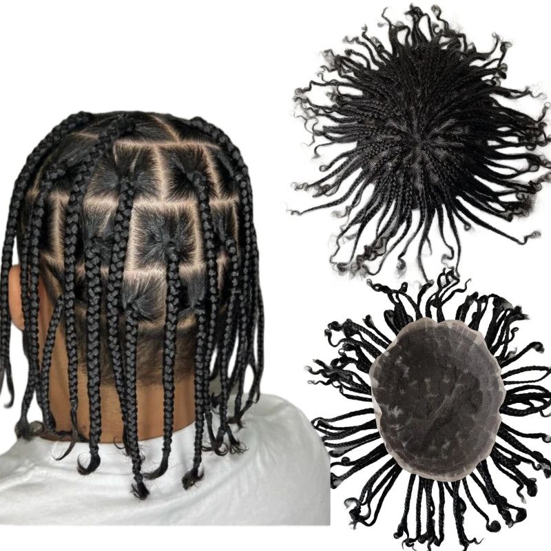 ### Indisk Virgin Human Hair Replacement - Box Braids Lace Toupee for Svarte Menn ####...