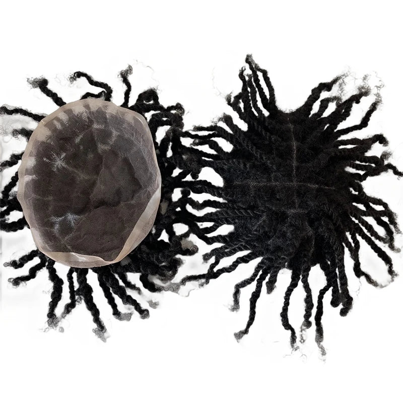Afro twist fletter tupé Full Lace hårsystem for svarte menn