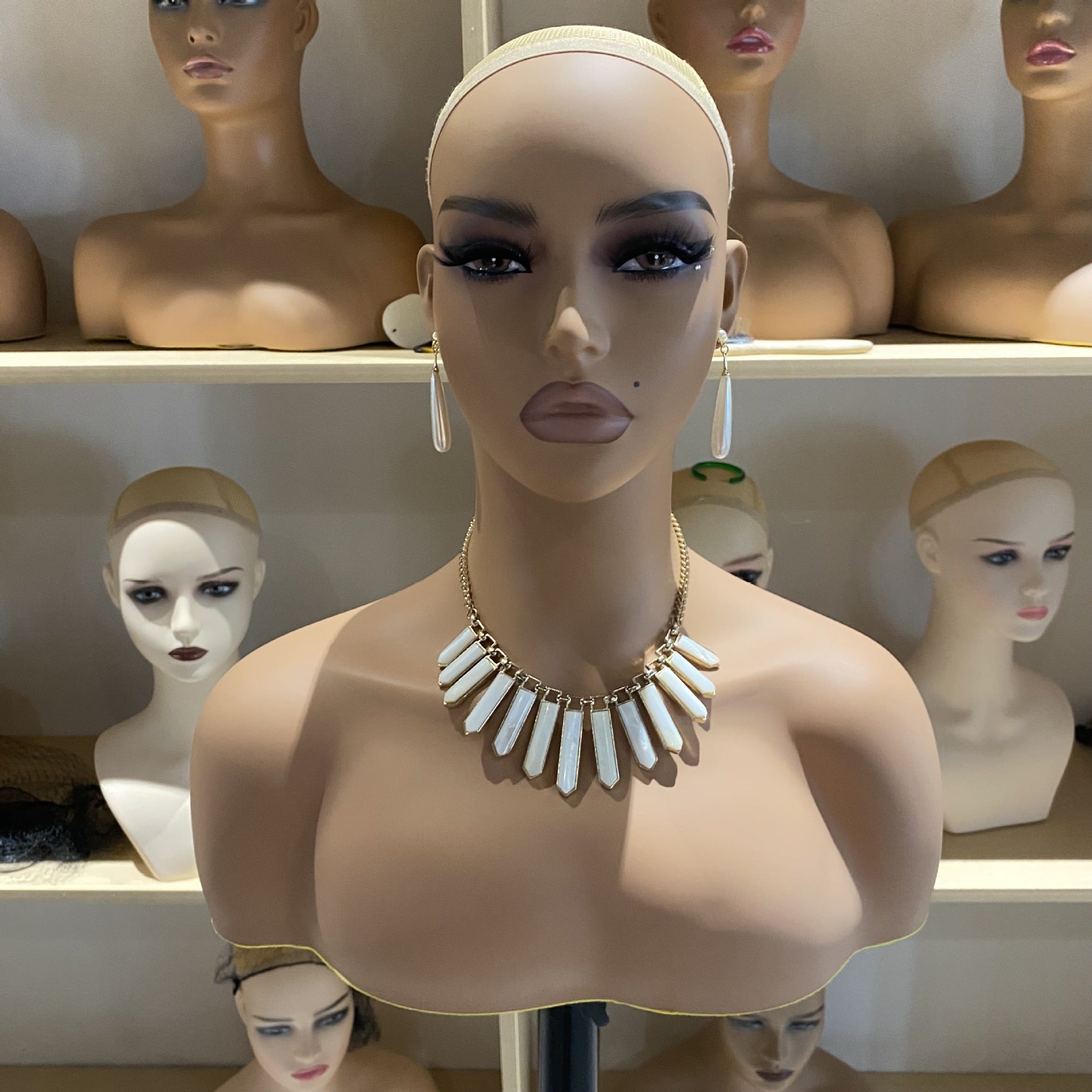 Kvinnelig parykkdisplay skulderrekvisitt øredobber smykkefotografering