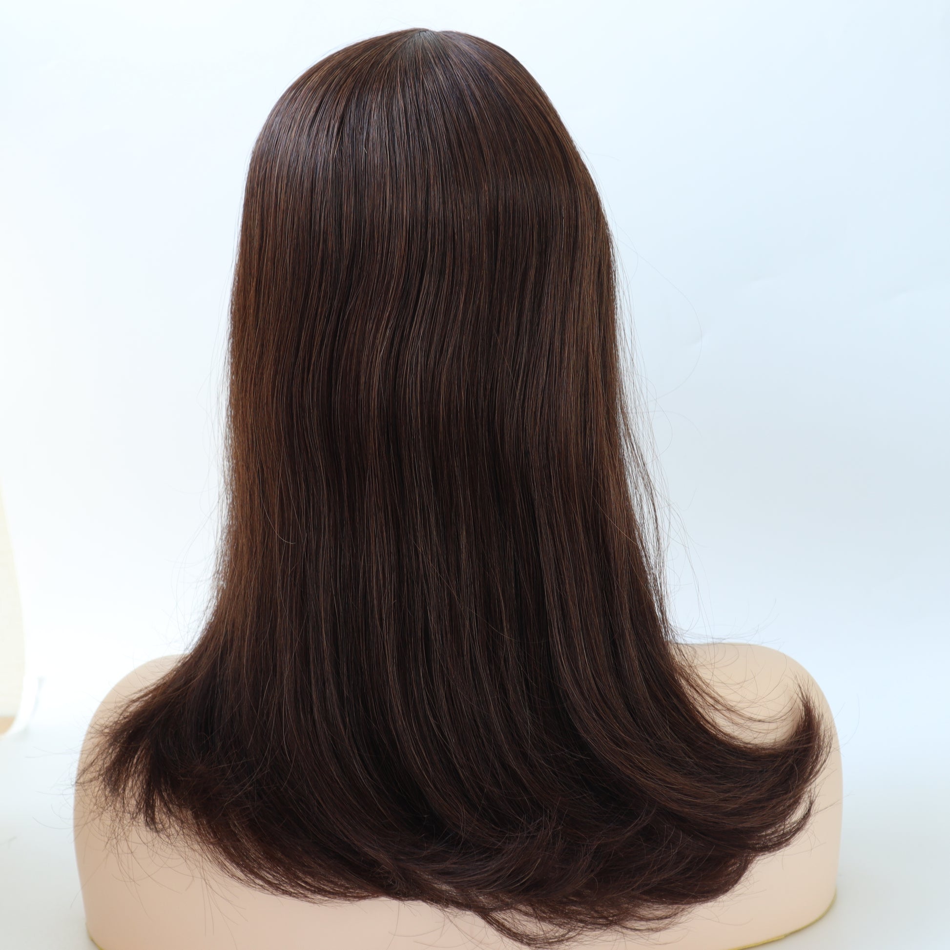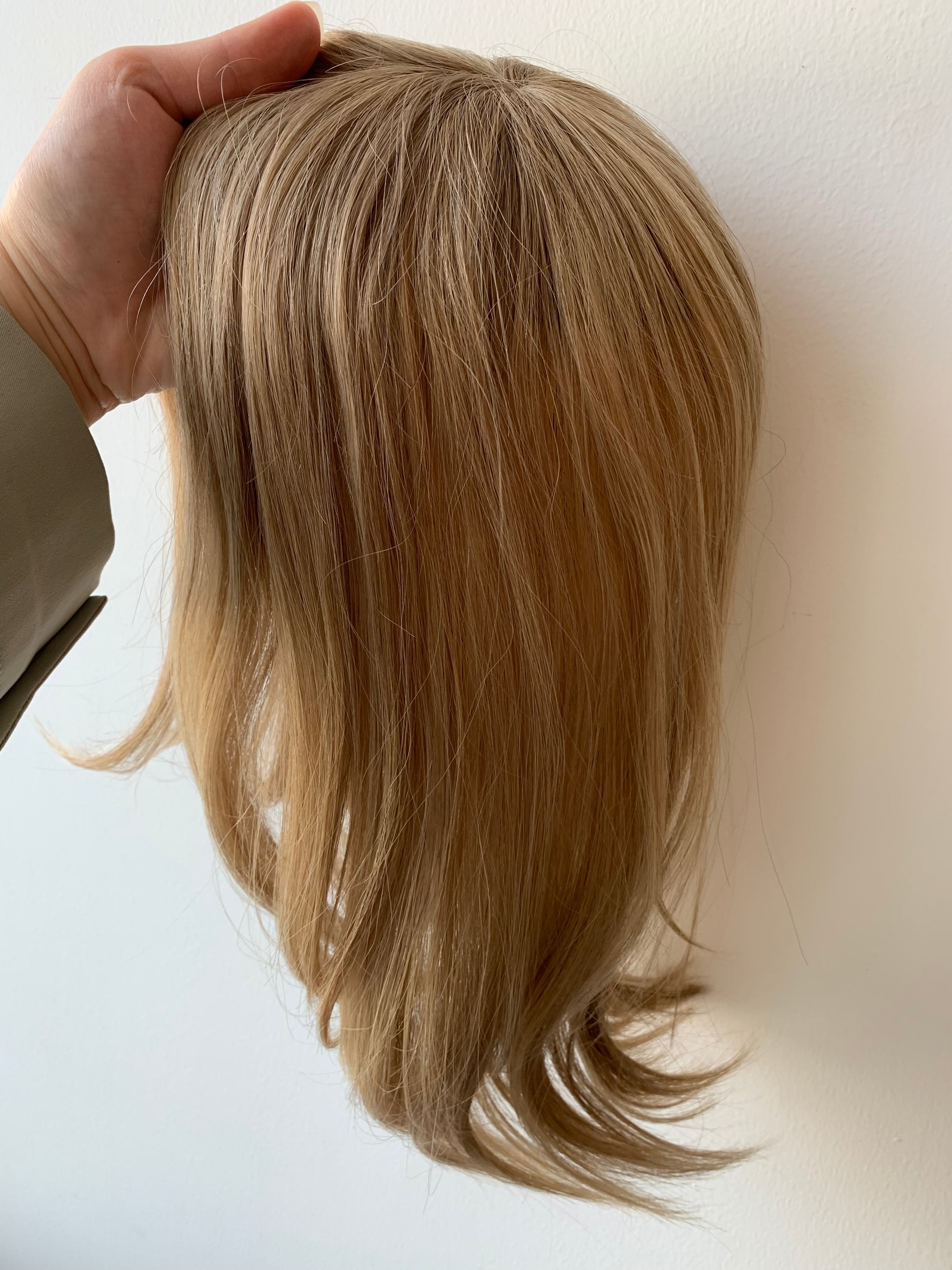 Dette monohårstykket for kvinner er enkelt å feste og ta av, for kvinner med tynt eller sparsomt hår som ønsker et solid, men naturlig parykkutseende