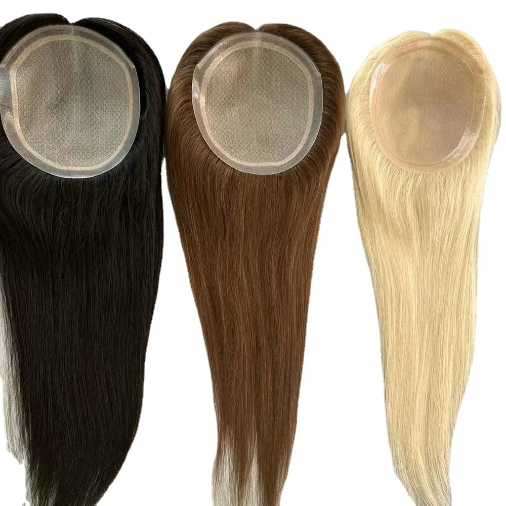 Toppery na jedwabnej bazie, naturalny tupet z ludzkich włosów dla kobiet, nakładka Remy
