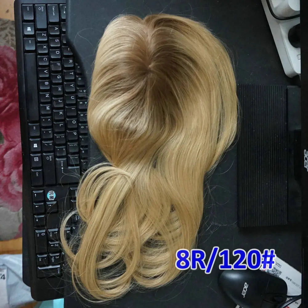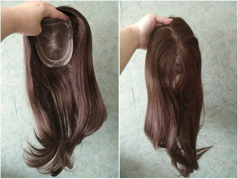 Topper-peruka z ludzkich włosów dla kobiet, brązowa, mono lace, nakładka na czubek głowy