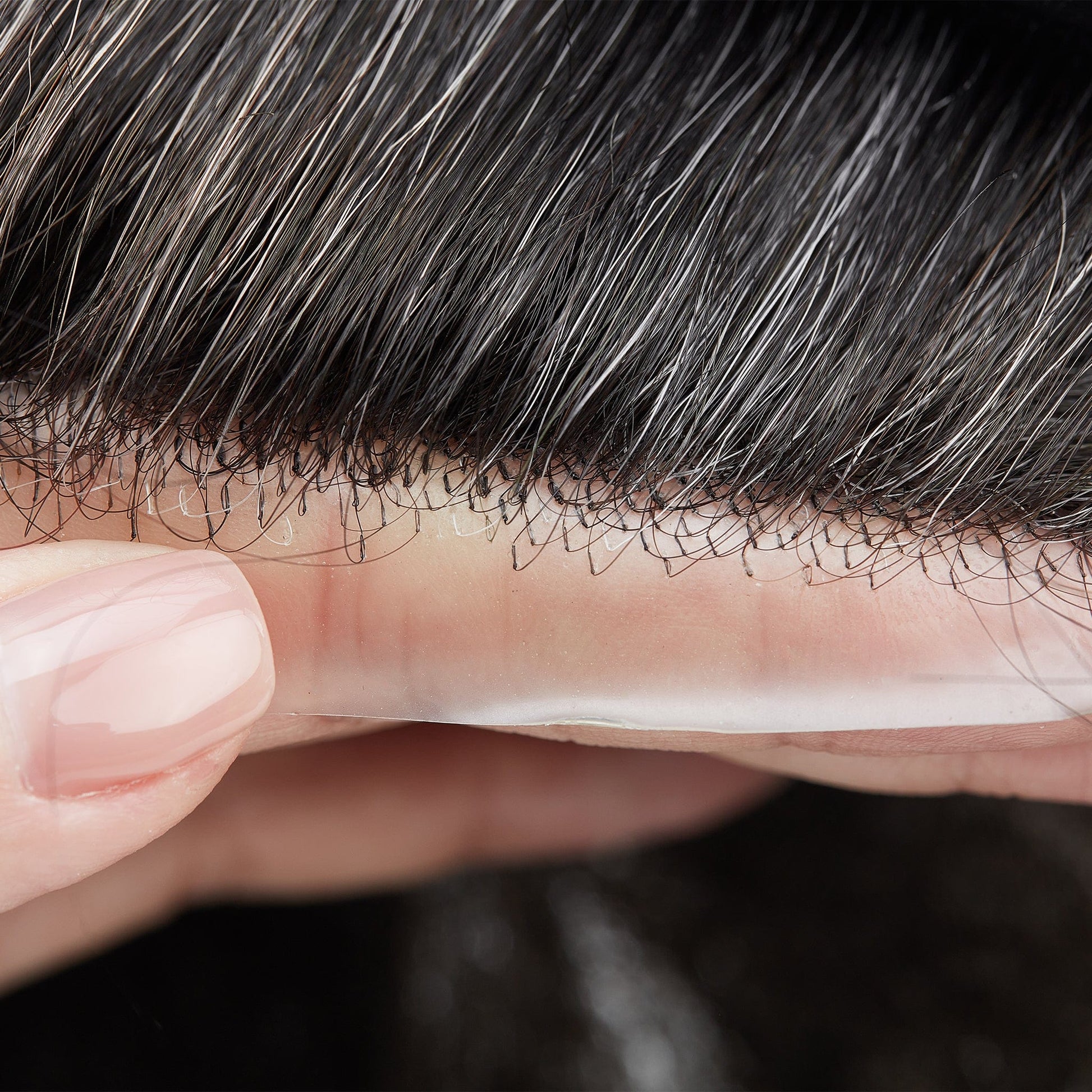 Francuska koronka zapewnia oddychalność i miękkość, natomiast cienka skóra wzmacnia kształt systemu włosów oraz sprawia, że tupet jest niezwykle łatwy do przyklejenia i zdejmowania taśmy lub kleju.