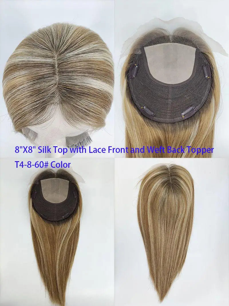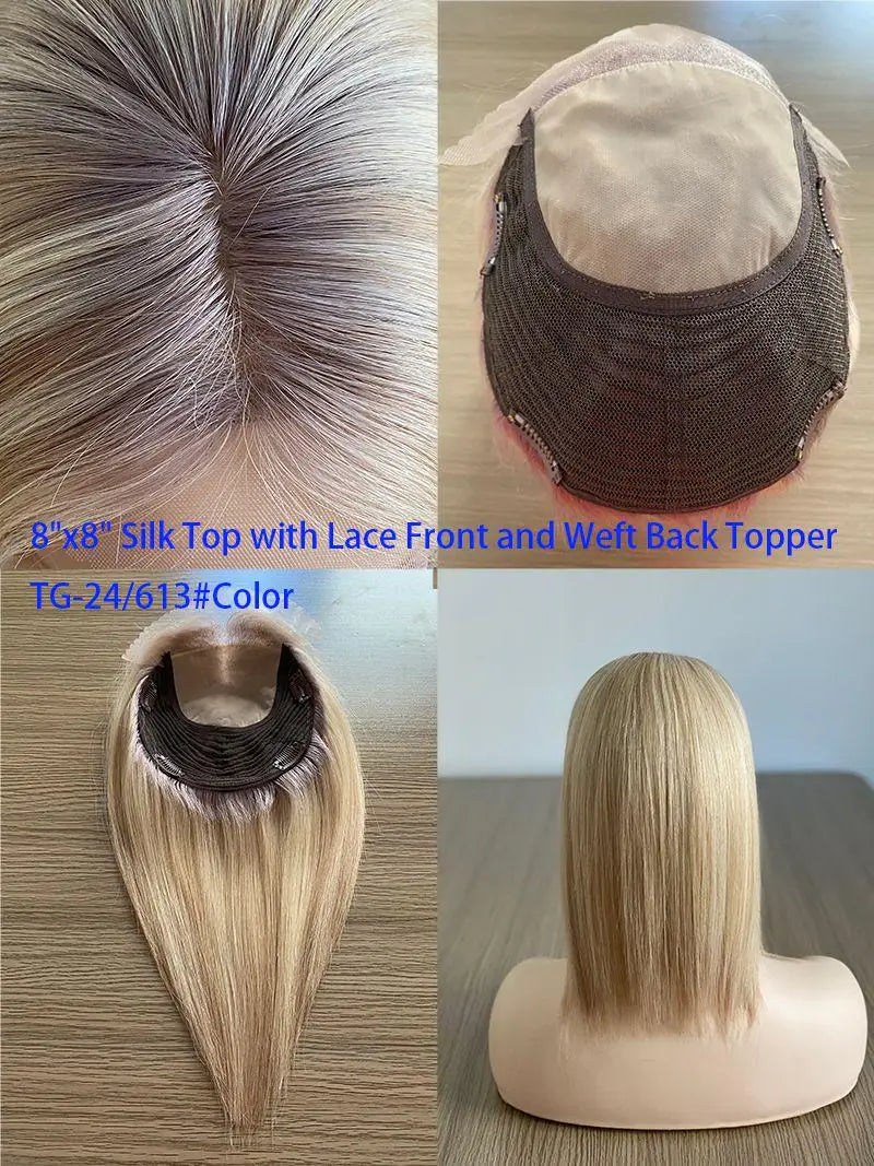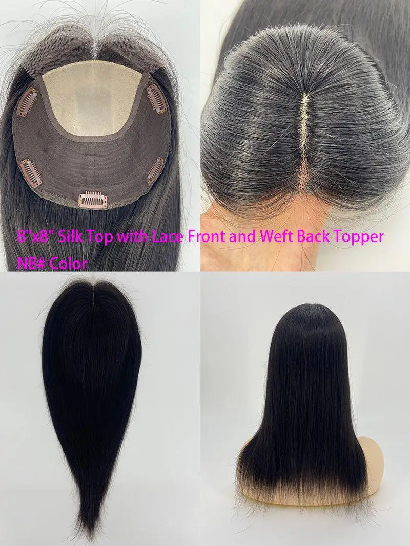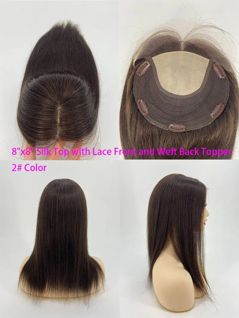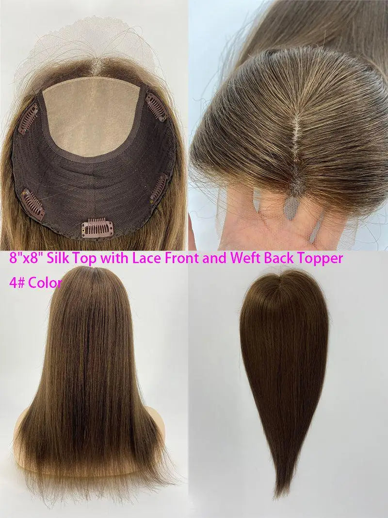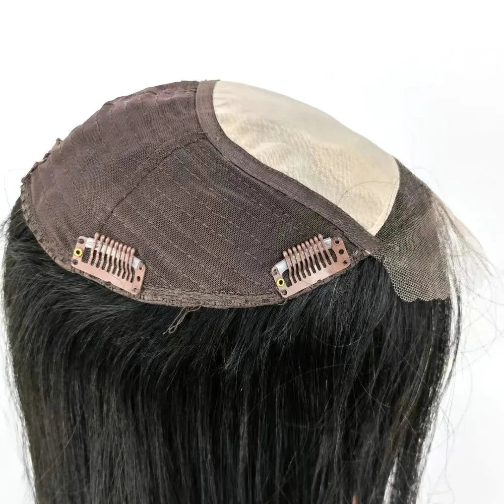 Koronka na przodzie, jedwabny, naturalny topper z ludzkich włosów z klipsami, Remy dla kobiet