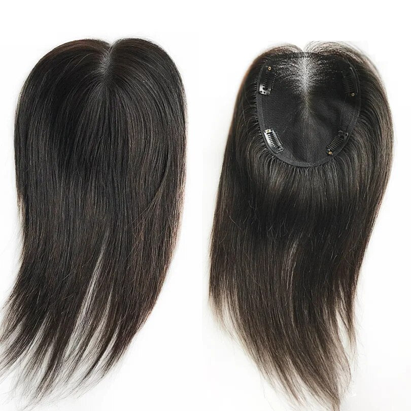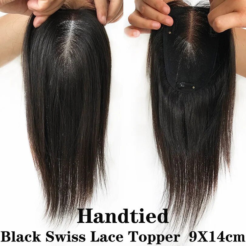 Toppery damskie z naturalnych włosów na szwajcarskiej koronce, mocowane na klipsy