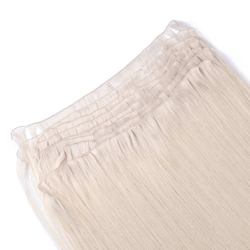 Nasze ręcznie wiązane przedłużenia wykonane są w 100% z dziewiczych włosów z nienaruszoną łuską (pochodzących od jednego
