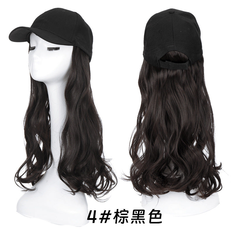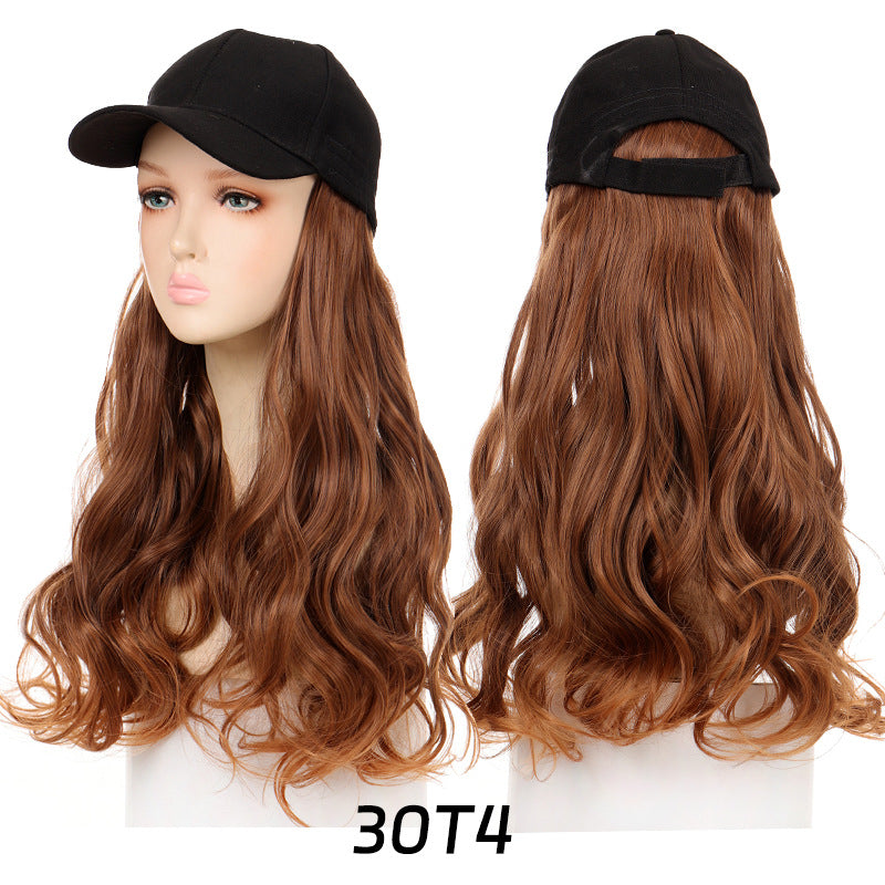 Long Wavy Curly Hair Wig Cap Natural Integrated Baseball Cap Wig in Black, Blonde, and Brown